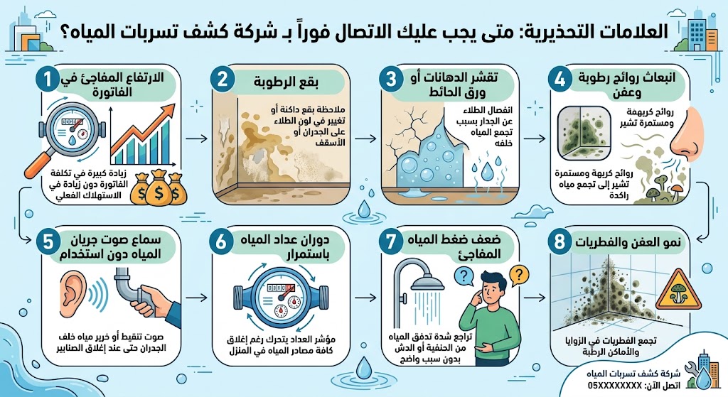 🔍 العلامات التحذيرية: متى يجب عليك الاتصال فوراً بـ شركة كشف تسربات المياه؟